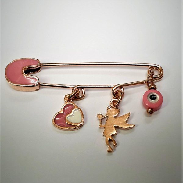 Παραμάνα για κορίτσι ασήμι 925 σε ροζ χρυσό μέταλλο με νεραιδάκι καρδούλα και ματάκι φίλντισι σε ροζ χρώμα.