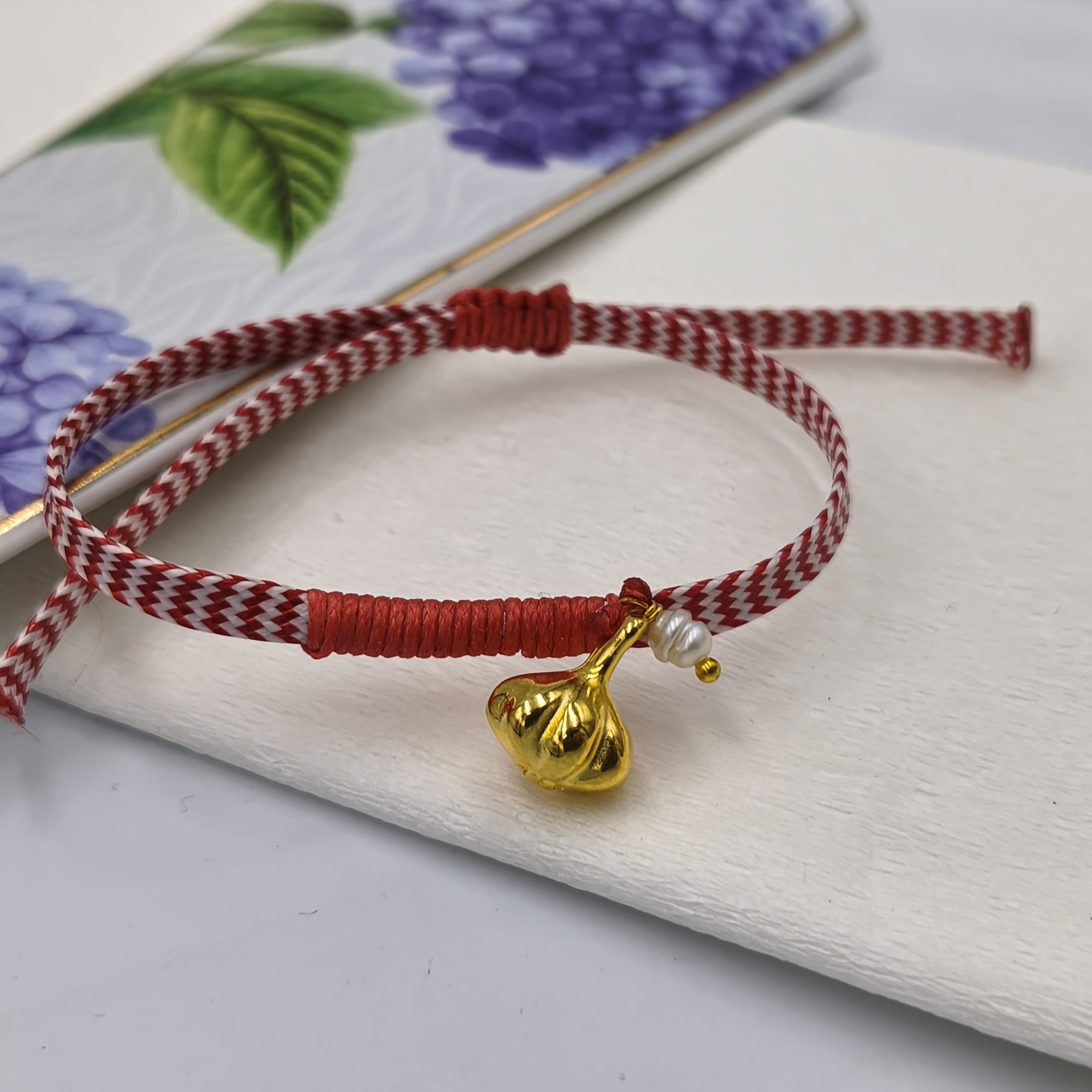 Χειροποίητο βραχιόλι για το Μάρτη με χυτό επιχρυσωμένο σκορδάκι και κόκκινο κορδόνι