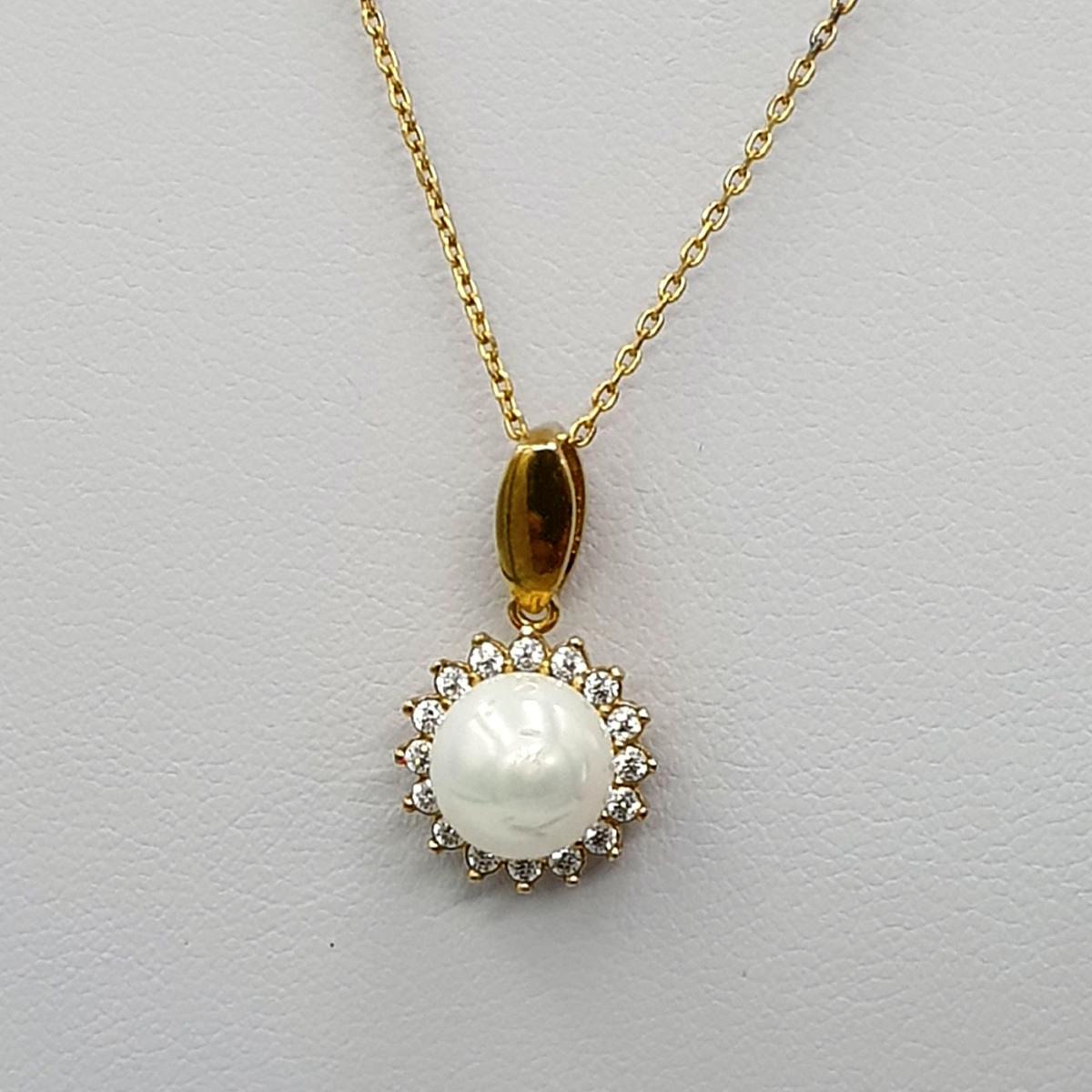 Ροζέτα με ζιργκονάκια και μεγάλο μαργαριτάρι.