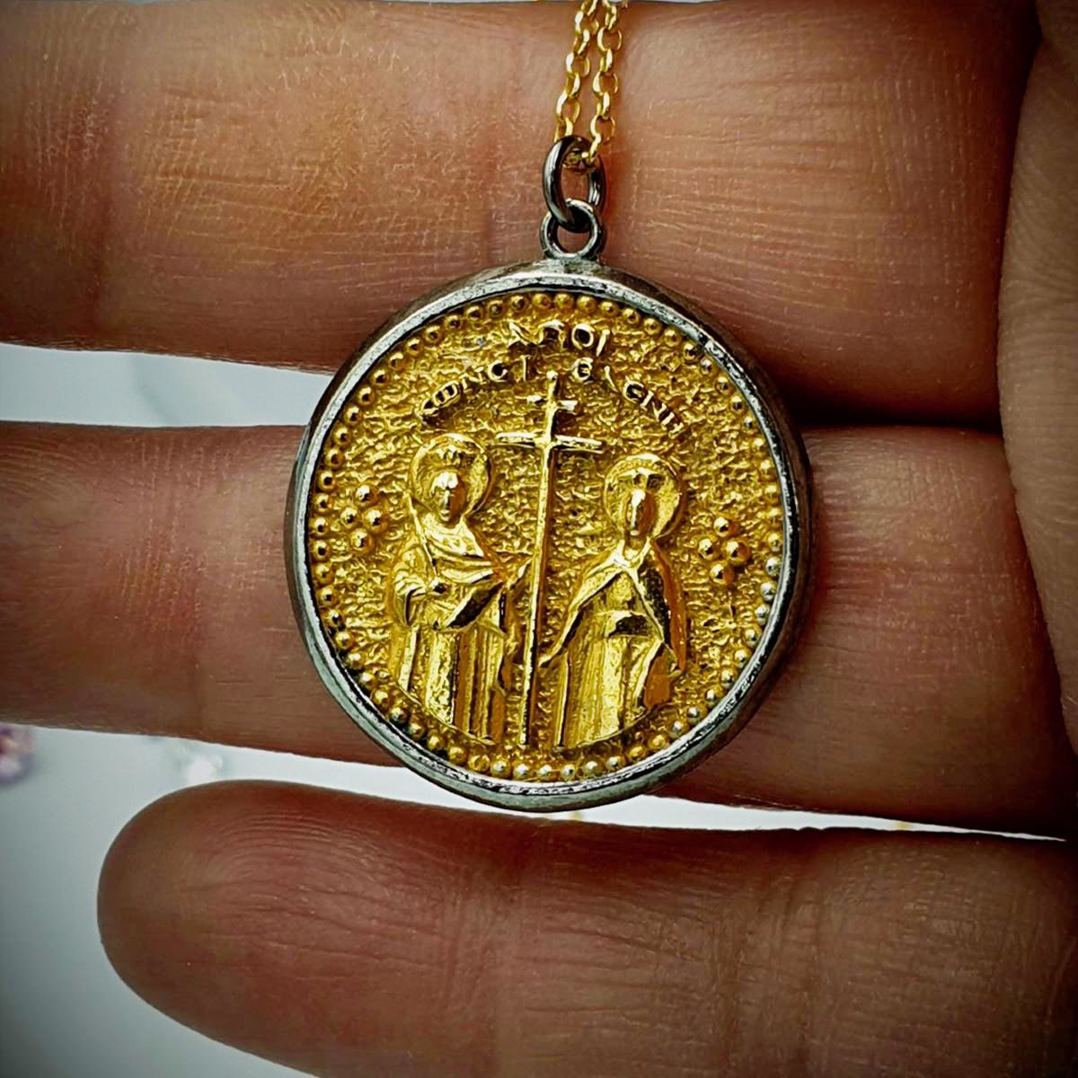 Φλουρί Κωνσταντινάτο ασήμι 925 δίχρωμο. Μαύρο εξωτερικά, χρυσό εσωτερικά, αλυσίδα 50 cm.